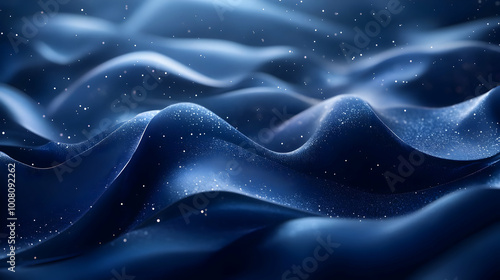 © Manroy, Obraz premium Abstract 3D Background with Wavy Lines and Glowing Particles