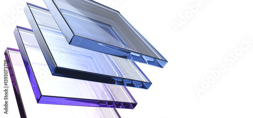 © marozhkastudio, Fototapeta premium Abstract 3d black background wallpaper with glass square shapes, iridescent light holographic gradient render. Crystal transparent plates with layer effect, digital design tech banner