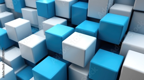 © AssanAI.Studio, Fototapeta premium Abstract 3D Blue and White Blocks Background