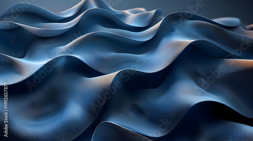 © Abab, Obraz premium Abstract 3D Blue Wavy Background