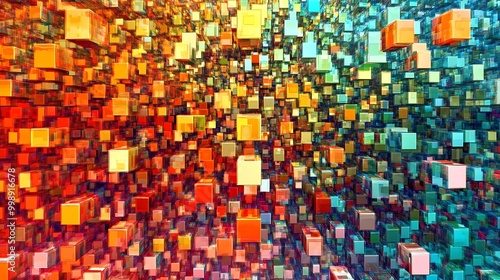 Fototapeta premium Abstract 3D Cube Art Collection: Geometric Designs, Textures, and Colorful...