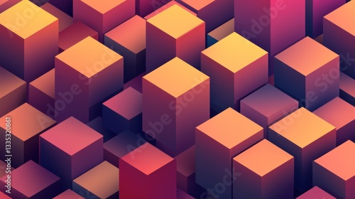 © luck, Naklejka premium Abstract 3D Cube Cityscape: A Vibrant Tapestry of Geometric Forms