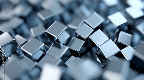 © jitthanant, Obraz premium Abstract 3D cube clusters with reflective surfaces, dynamic and futuristic