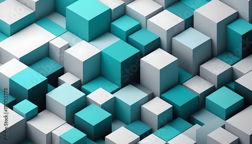 Obraz premium Abstract 3D Cube Pattern, Blue and White Geometric Composition, Minimalist Digital Art