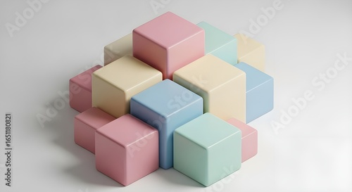 Fototapeta premium Abstract 3D Cubes in Minimal Pastel Color Composition