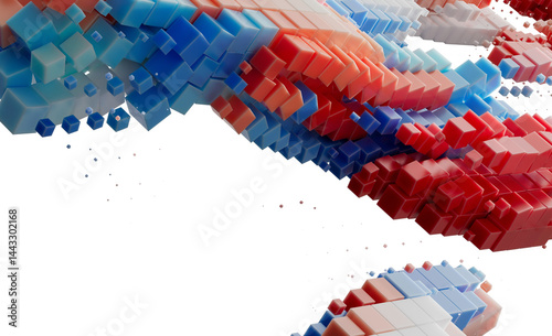 © vegefox.com, Naklejka premium Abstract 3D Cubes Red Blue White Digital Technology Background