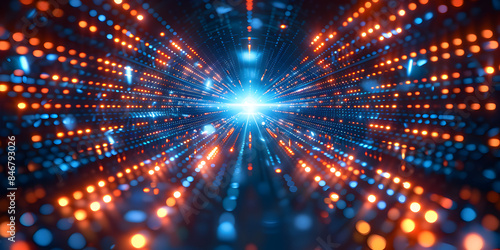 © Nim, Fototapeta premium Abstract 3d digital background, lines, perspective, speed, for tech, data, audio, graphics
