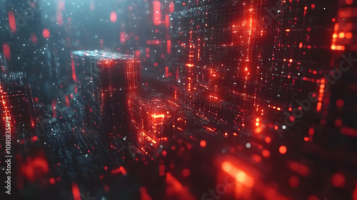 © farikhin, Fototapeta premium Abstract 3D Digital City with Red Lights Background