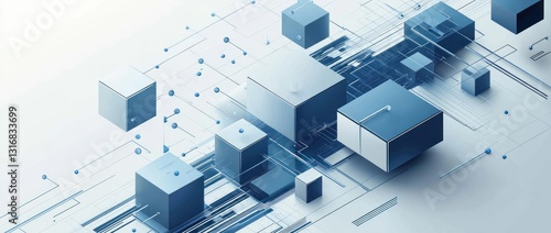 © Alfath, Obraz premium Abstract 3D digital cubes and lines network.