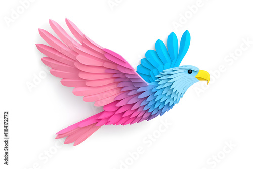 Fototapeta premium Abstract 3D eagle paper cut shape, isolated on a white background
