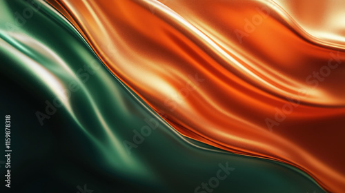 © Aksayan, Obraz premium Abstract 3D Flowing Liquid-Like Wave Textures in Orange, Green, and Copper Gradient background wallpaper