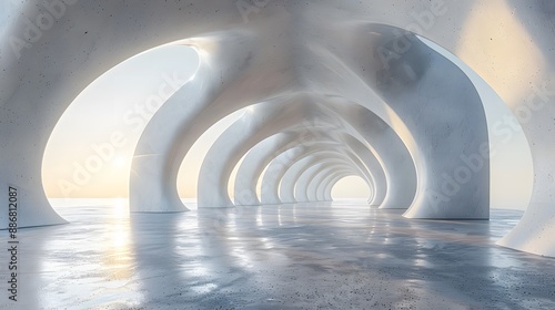 Obraz premium abstract 3D Futuristic White Structures Corridor Modern Architectural...