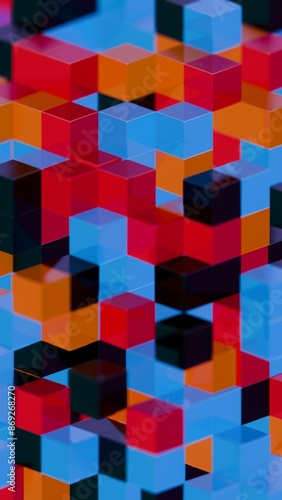 © Oleksandr, Naklejka premium Abstract 3D Geometric Pattern with Colorful Interlocking Cubes