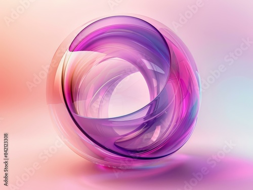 © Skyfe, Obraz premium Abstract 3D Glass Sphere with Purple and Pink Swirls, Modern Art Design