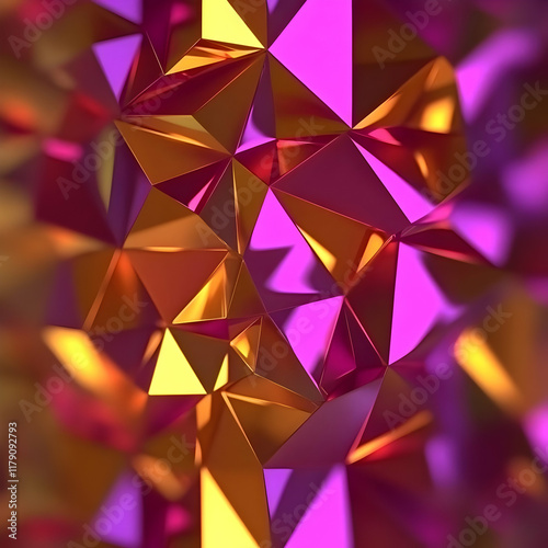 © share, Obraz premium Abstract 3D Gold Purple Polygonal Background