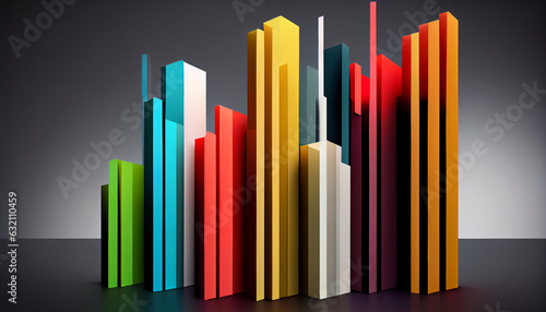 Fototapeta premium Abstract 3D growth chart ascending coloured bars on solid colour background, abstract graph, Ai generated image
