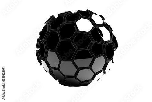 © Cahyani, Fototapeta premium Abstract 3D Hexagon Sphere Isolated On Transparent Black Background