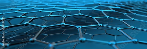 Fototapeta premium Abstract 3D illustration of a graphene molecule structure. A honeycomb like pattern of atoms connected by bonds, representing the strong and versatile material.