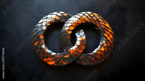 © farikhin, Naklejka premium Abstract 3D Illustration of Interlocking Circles with Scaled Surface