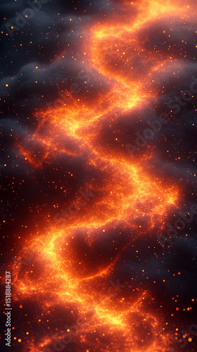 Naklejka premium Abstract 3D illustration of vibrant orange optical fiber particles glowing...