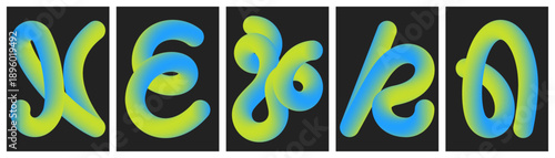 Obraz premium Abstract 3D multicolored fluid gradient loops and curves collection