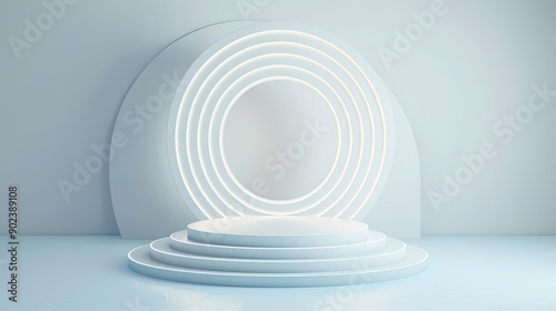 Obraz premium Abstract 3D podium with swirling light patterns, modern art, innovative display