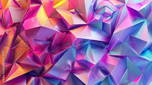Fototapeta premium Abstract 3D polygon wallpaper with vibrant, multicolored triangles and dynamic composition