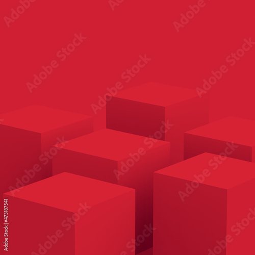 © Mama pig, Fototapeta premium Abstract 3d red cube podium scene studio background.