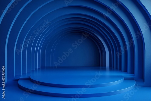 © Sandy Soni, Obraz premium Abstract 3d render, blue geometric background design, Generative AI