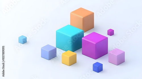 © F, Obraz premium Abstract 3d render, geometric composition, colorful background design with cubes