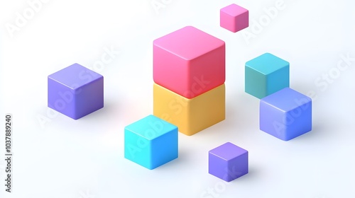 © F, Obraz premium Abstract 3d render, geometric composition, colorful background design with cubes