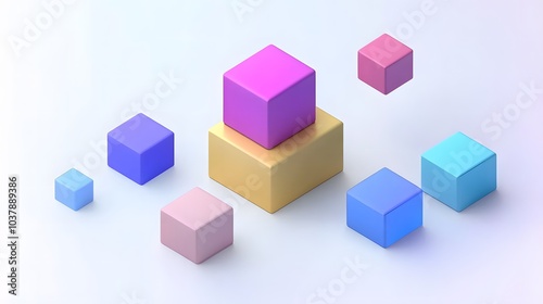 © F, Obraz premium Abstract 3d render, geometric composition, colorful background design with cubes