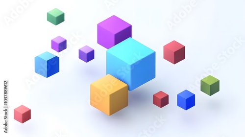 © F, Obraz premium Abstract 3d render, geometric composition, colorful background design with cubes