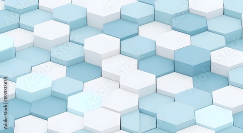 Obraz premium Abstract 3D Render Hexagon Pattern Background in Minimalist Blue and White...