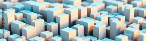 Obraz premium Abstract 3D Render of Geometric Cubes Cityscape Technology Background Blue and Beige Tones
