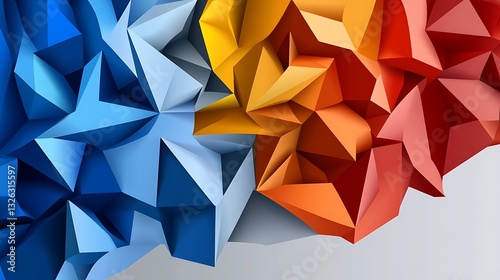 © Yuto, Obraz premium Abstract 3D Render of Interlocking Geometric Shapes in Vibrant Hues AI Generated