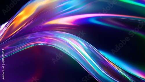 © Hadjnaas, Fototapeta premium Abstract 3d render of light emitter glass with iridescent holographic neon vibrant gradient