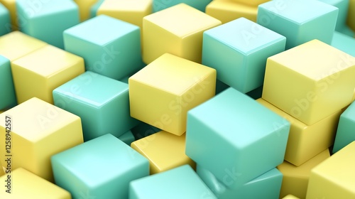 © Rasel, Obraz premium Abstract 3D Render Yellow Green Cubes Background
