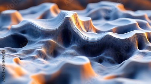 © Kusuma, Fototapeta premium Abstract 3D rendered landscape with metallic texture and warm light.