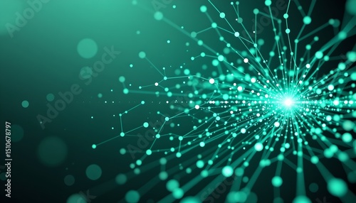 © CRISPIFLY, Fototapeta premium abstract 3d rendered technology network concept with connection dots, positioned on the right with mint green tones, clear copy space on the left for text or graphics.