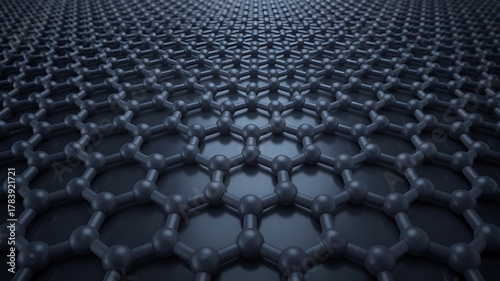 © Ghazala, Obraz premium Abstract 3d rendering of a graphene lattice structure, a single layer of carbon atoms arranged in a hexagonal honeycomb pattern