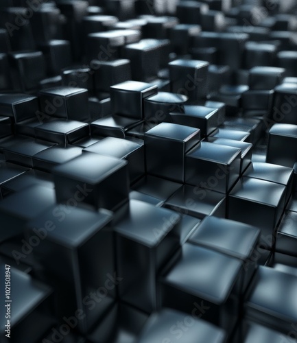 Obraz premium Abstract 3D rendering of a surface of black cubes with beveled edges and a...