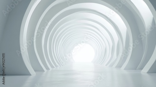 © ArtificialHorizons, Naklejka premium Abstract 3D Rendering of a White Architectural Tunnel Background