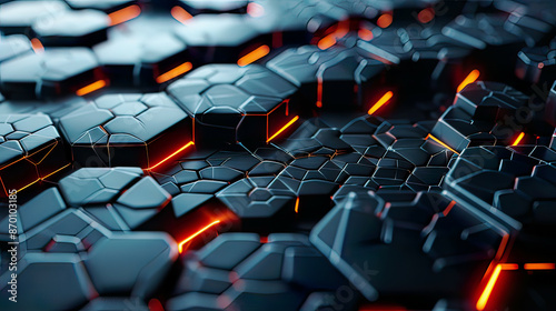 Obraz premium Abstract 3D rendering of hexagonal nanomaterial structure emphasizing...