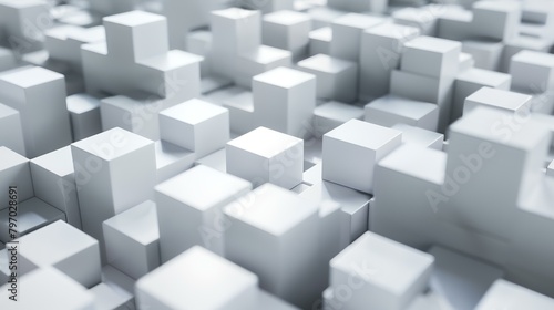 © Robina, Obraz premium Abstract 3d rendering of white cubes background. Cubes pattern.
