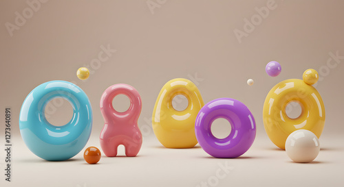 Fototapeta premium Abstract 3D Shapes in Pastel Colors, Generative AI image, Colorful Geometric Shapes on Beige Background, Generative AI image