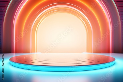 © hfwstudio, Obraz premium Abstract 3D stage with glowing archway.