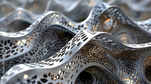 Fototapeta premium Abstract 3D structure with intricate patterns and curves, showcasing design and material aesthetics.