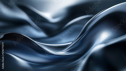 Fototapeta premium Abstract 3D waves in deep, dark hues, with soft light creating reflections...