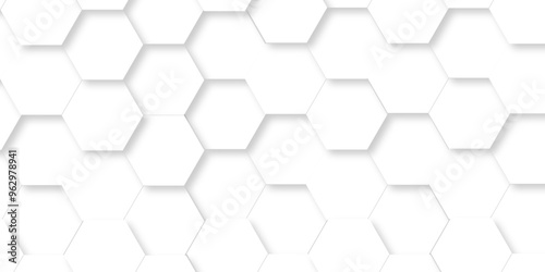 © MdLothfor, Fototapeta premium Abstract 3d white hexagon realistic mesh cell honeycomb texture. geometric white grid emboss hexagonal background. luxury white pattern.